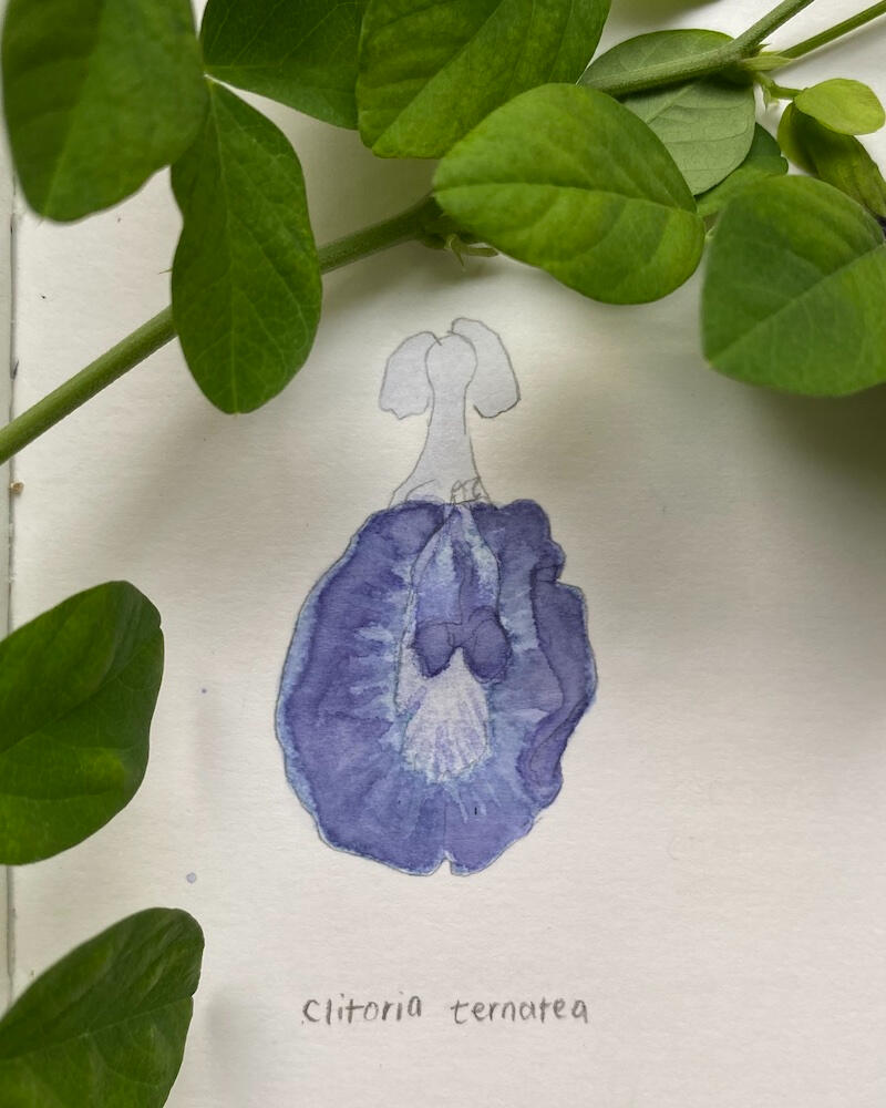 2023Experimental floral ink made from butterfly pea (Clitoria ternatea).
